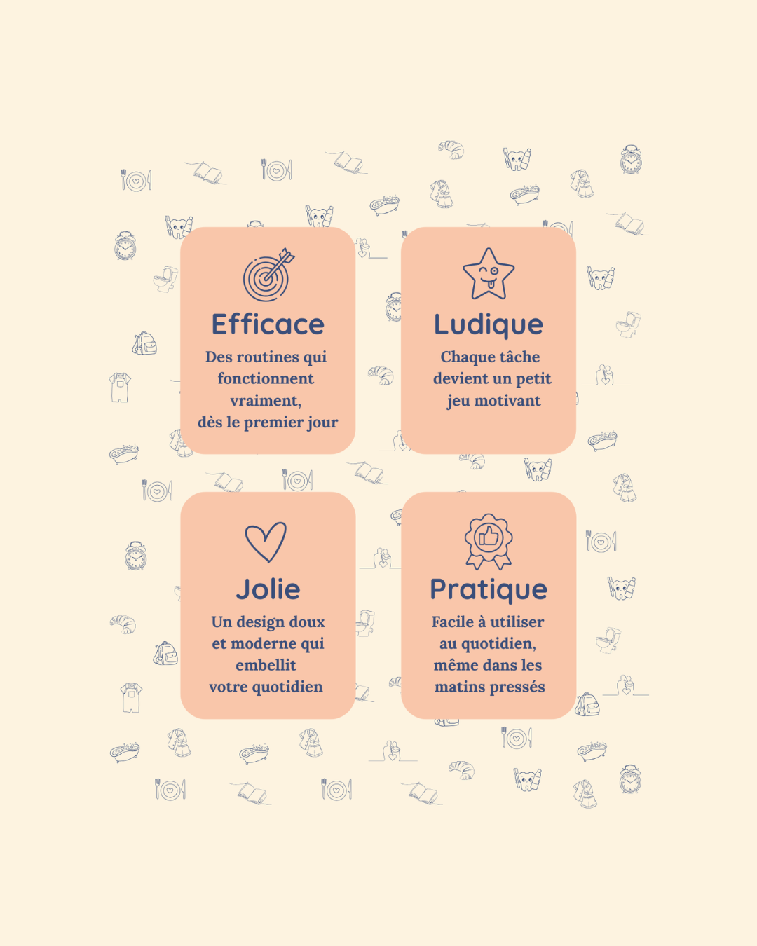 👨👩👧👦 Alléger le quotidien des parents avec des supports simples et ludiques qui rendent les routines plus agréables.